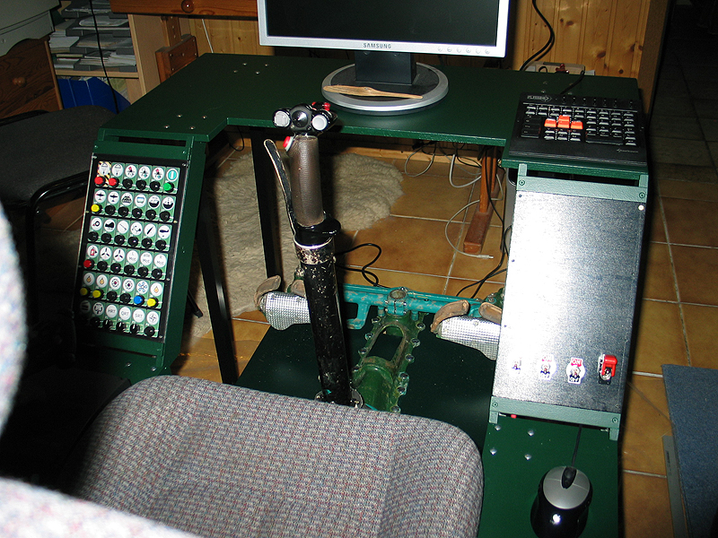 Auf LLTM2007 habe ich Andres Cockpit bewundert. Besonders die auf der linken Seite platzierte Schalter Einheit mit den grafischen Symbolen. Es basierte auf der Vorlage für PCdash2 von [SH]Dr.Jones. Auf dem Foto links meine Variante. ![]() Andre Cockpit |