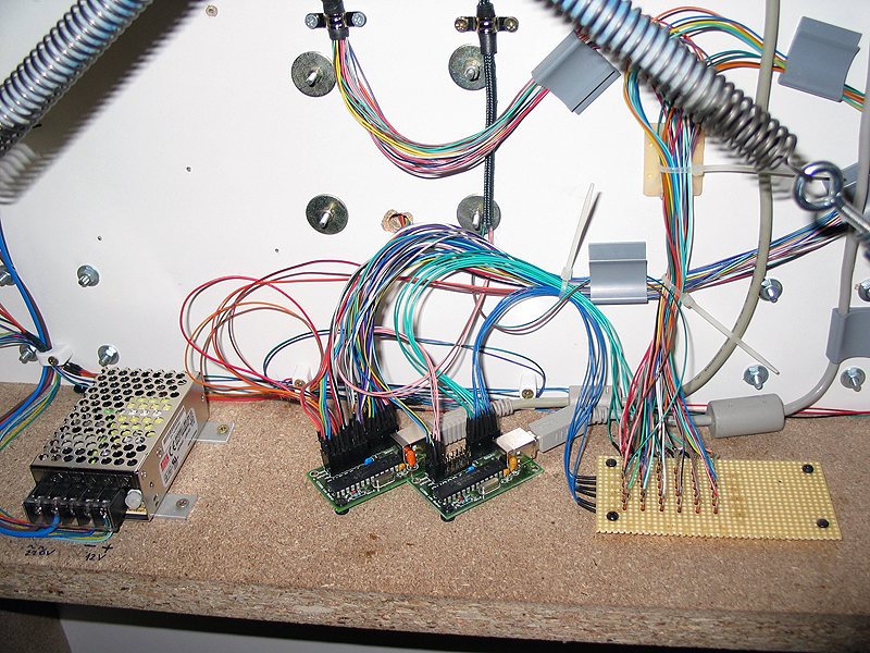 Angeschlossen sind alle Tasten und Potis über zwei Precision Joystick Controller BU0836 Platinen. Link |