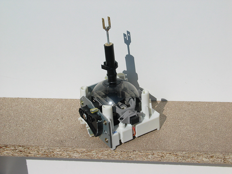 Und die erste entscheidende Frage: wie übertrage ich die mechanische Bewegung des Knüppels? Auf dem Foto sieht man die Mechanik eines MS Joysticks. |