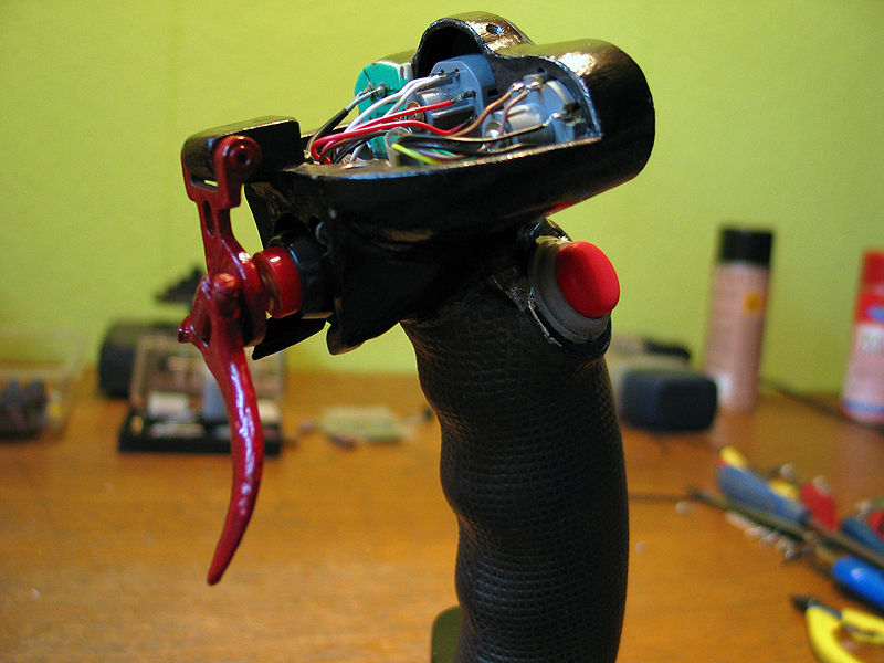 In dem Handgriff des Knüppels waren keine Originalknöpfe mehr da. |